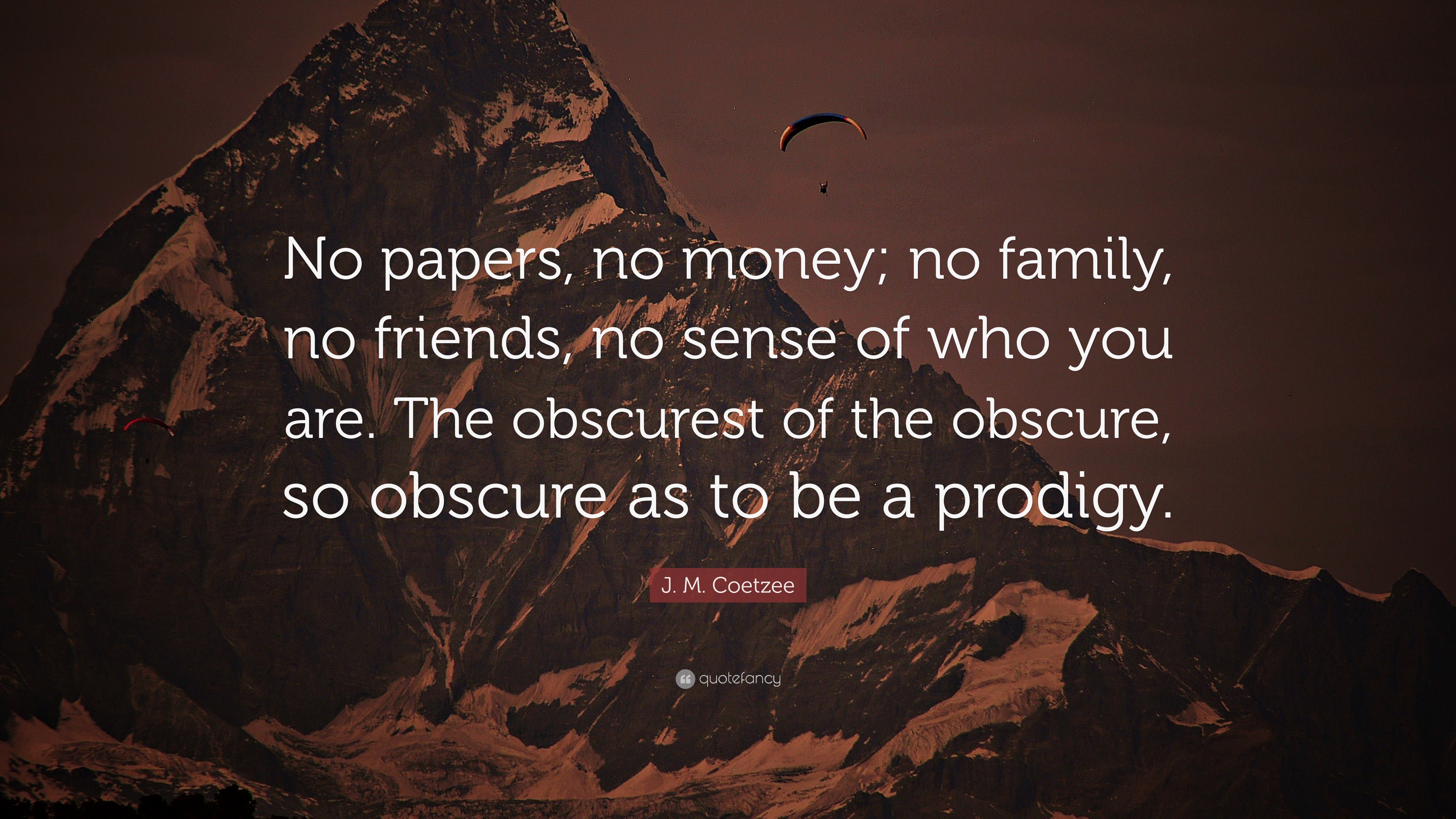 J. M. Coetzee Quote: “No papers, no money; no family, no friends