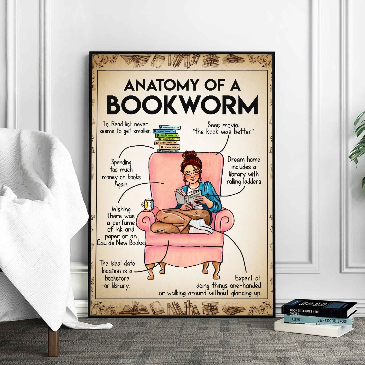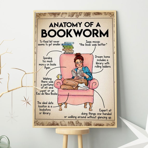 Anatomy of A Bookworm Poster, Book Poster, Bookish Gifts